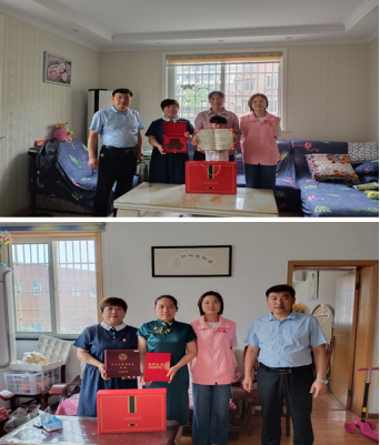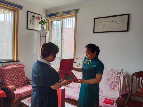 7月1日上午,新銅社區(qū)黨委副書記陳建康、婦聯(lián)主席魏秀香帶領(lǐng)工作人員、志愿者前往呂圣英、艾榮玨、孫東明、姚雪、劉成文家中,為他們頒發(fā)榮譽(yù)證書及獎(jiǎng)牌,獻(xiàn)上祝福。