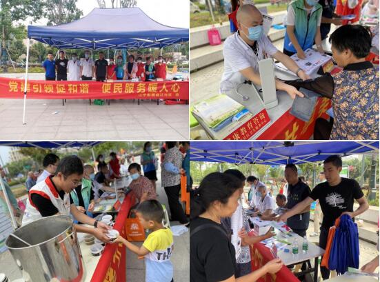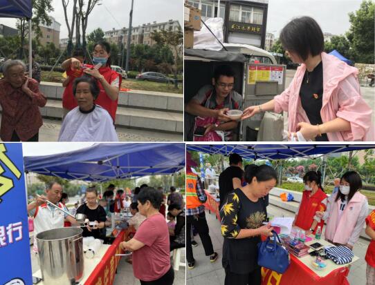 黨建手拉手,服務(wù)惠民生,固長效。盛江社區(qū)以“黨建一盤棋”的思路發(fā)揮整合各類資源,真正做到為民做好事、辦實事。活動現(xiàn)場,工作人員向社區(qū)居民宣傳普及法律知識,提供免費法律咨詢服務(wù)、計生政策咨詢、社會勞動保障咨詢等,并發(fā)放司法單頁、人口普查單頁、計生用品及社會保障材料。同時,黨員干部為轄區(qū)內(nèi)環(huán)衛(wèi)工人、綠化工人、安保人員、交警、快遞員及居民群眾送去綠豆湯,以此感謝他們用辛勤的勞動為城市建設(shè)作出的貢獻(xiàn),把清涼送到崗位,把關(guān)愛送進(jìn)城市建設(shè)者們的心坎里?;顒蝇F(xiàn)場,還有醫(yī)務(wù)人員為居民測量血壓,對血壓偏高的居民提出科學(xué)飲食建議,提醒他們要改變不良生活方式。更有社區(qū)志愿者主動請纓為轄區(qū)居民免費理發(fā),“咱們政府想著老百姓,在家門口就能享受免費理發(fā),真是太好了!”王阿姨高興地說道。