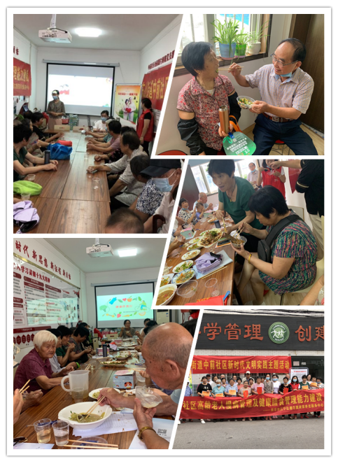 活動(dòng)中,營(yíng)養(yǎng)學(xué)家張老師為社區(qū)在座老人回顧了去年10月以來(lái),其教授的“美味佳肴”,并指出夏季飲食要以清淡為主,多吃苦味的食物。10位“美食家”根據(jù)老師的營(yíng)養(yǎng)搭配,自己準(zhǔn)備材料,烹飪出一道道美味的“饕餮盛宴”,不僅色香俱佳,而且都有著較高的營(yíng)養(yǎng)價(jià)值。隨后,營(yíng)養(yǎng)學(xué)家張老師、呂老師和社區(qū)夏主任現(xiàn)場(chǎng)試吃,即興點(diǎn)評(píng),投票評(píng)出了前三名和優(yōu)秀獎(jiǎng),并發(fā)放獎(jiǎng)品。最后,大家圍在一起,共同品味美食,暢所欲言,劉師傅說(shuō)道:“這次活動(dòng),大家歡聚一堂,讓我感受到了社區(qū)大家庭的其樂融融、歡樂美好,下次我還會(huì)繼續(xù)參加。”