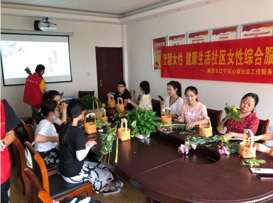 插花是一種生活藝術(shù),我國的插花歷史源遠流長,發(fā)展至今已成為人們?nèi)粘I钏豢扇鄙俚囊徊糠?。為陶冶轄區(qū)內(nèi)婦女的關(guān)于美的感悟,提高他們的精神文化素養(yǎng)和藝術(shù)修養(yǎng),豐富轄區(qū)群眾的文化生活,7月10日,南京市江寧區(qū)淳化街道成山社區(qū)婦聯(lián)、計生協(xié)在社區(qū)新時代文明實踐站共同開展花藝活動。