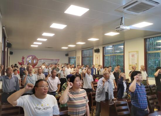在激昂的歌聲中,黨總支書記詹強酉書記帶領全體黨員高舉右臂,緊握拳頭,重溫入黨誓詞。在鏗鏘有力的誓言中,黨員們接受了一次心靈的洗禮和凈化,更加堅定了他們的理想信念。