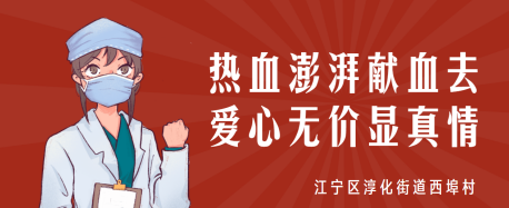 大愛傳承美德,熱血彰顯真情。為了進(jìn)一步發(fā)揚(yáng)勇于擔(dān)當(dāng)、無私奉獻(xiàn)的博愛善舉,7月14日,江寧區(qū)淳化街道西埠村組織網(wǎng)格員、志愿者、工作人員義務(wù)獻(xiàn)血,用實(shí)際行動詮釋關(guān)愛生命、心系社會的人道主義精神,體現(xiàn)了“西埠人”良好的精神面貌。