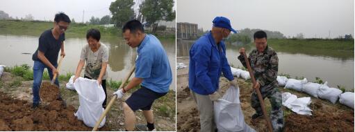 九鄉(xiāng)河是石埠橋村境內(nèi)的通江河,石埠橋橋頭距九鄉(xiāng)河河口閘200米內(nèi)的河西邊河堤是防汛重點(diǎn)部位,此次防汛期間,石埠橋村組織工作人員、黨員志愿者及群眾一起,在烈日當(dāng)頭下,不怕苦、不怕累,勇于奉獻(xiàn),加班加點(diǎn),一鍬鍬的把泥土裝灌包,再疊包,揮汗如雨,一刻不停,做好河堤的加固工作,確保現(xiàn)場(chǎng)防汛措施落實(shí)到位,為村民建立安全有效的“防護(hù)網(wǎng)”。