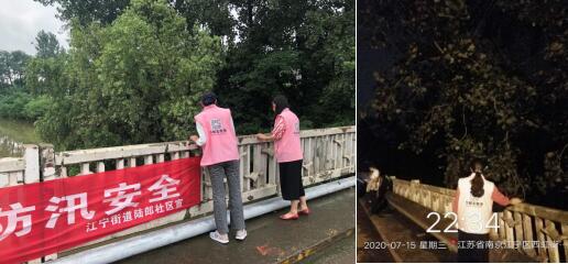 由于長(zhǎng)江上游連續(xù)暴雨,12日下午長(zhǎng)江水位線已超過(guò)1998年水位高度,江寧街道范圍內(nèi)通江河道內(nèi)的水位線也在逐步逼近臨界點(diǎn),防汛壓力逐漸增大。南京市江寧區(qū)江寧街道陸郎社區(qū)積極應(yīng)對(duì),由巾幗志愿者,黨員志愿者以及村民自發(fā)組成的防汛突擊隊(duì),上下齊心,擰緊防汛“安全閥”。