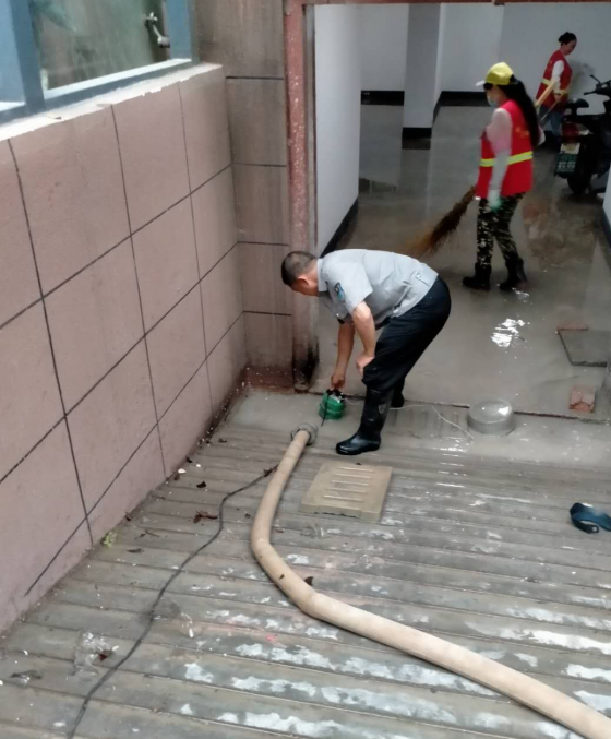 百水芊城社區(qū)工作人員在接到工單后,立刻聯(lián)系社區(qū)物業(yè)人員前往現場查看。根據現場情況,物業(yè)人員立刻拿來水管和小型抽水泵等設備將地下室里的積水抽走,并安排保潔員清掃殘余積水和雜物,解決了居民的憂心問題,恢復地下室使用。