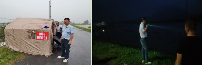 在西城村書(shū)記、主任的帶領(lǐng)下,廣大黨員夜間巡查圩堤,積極配合開(kāi)展災(zāi)情、災(zāi)害隱患排查,宣傳防汛知識(shí),在存在隱患的重點(diǎn)地段設(shè)置警示牌、警戒線,并及時(shí)上報(bào)汛情,充分發(fā)揮黨員先鋒模范作用,讓黨員作用發(fā)揮一線、黨旗一線高高飄揚(yáng)。