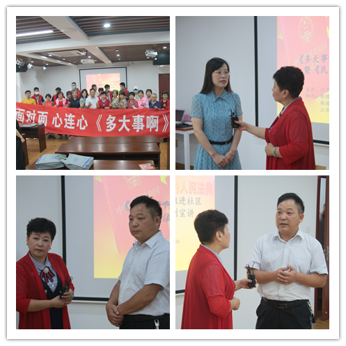 為認真貫徹落實黨中央關于廣泛開展民法典普法工作的重要指示精神,加大《民法典》重大意義的宣傳教育,讓《民法典》走到群眾身邊、走進群眾心里,7月21日上午,江寧區(qū)秣陵街道殷巷社區(qū)聯(lián)合江寧區(qū)融媒體中心、秣陵街道百家湖司法所、江蘇寧通律師事務所開展了《民法典》普法講座,矛盾調解專家梅大姐、張立新所長、張武營長、王婷婷律師、汪書記出席并發(fā)表講話。