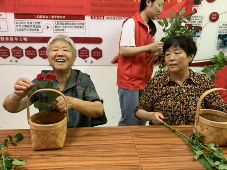 新時(shí)代文明實(shí)踐|以花會(huì)鄰 香滿社區(qū) 中前社區(qū)組織老年人開展插花活動(dòng)