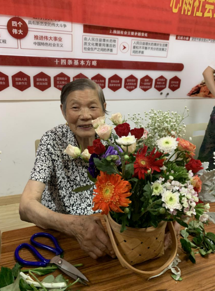 此次的插花藝術(shù)活動(dòng),增強(qiáng)了轄區(qū)老人的動(dòng)手能力,陶冶老人的藝術(shù)情操。不僅讓社區(qū)老年居民學(xué)習(xí)到插花技巧,增添美的享受,在向老年居民傳授插花技巧、用鮮花扮靚生活的同時(shí),更好地提升了社區(qū)老年人的文化素養(yǎng),增強(qiáng)居民的退休生活質(zhì)量,有效融洽了鄰里感情,營造了濃厚的人文社區(qū)的氛圍。