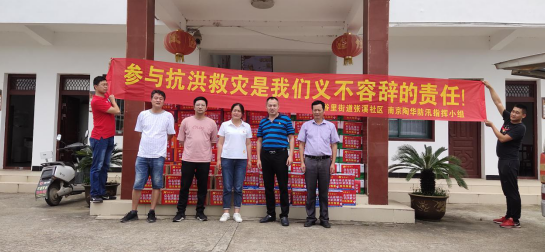 現(xiàn)場,南京陶華新型建筑材料有限公司代表將礦泉水50箱,牛奶30箱,餅干30箱,方便面50箱送到社區(qū)居委會,并主動請纓,帶領廣大企業(yè)員工,投身到防汛的洪流中去,他表示,十分感謝社區(qū)黨委帶領防汛值班人員在前方的辛勤付出,我們才能在后方照常的做生意,我作為企業(yè)負責人,只是盡綿薄之力。隨后,李書記代表居委會向南京陶華新型建筑材料有限公司代表表示衷心的感謝,并表示愛心物資將曬在防汛陽光下、用在抗災刀刃上,堅決以鐵的紀律保障救災工作有力開展。