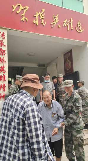 抗美援朝老兵在士兵的攙扶下,來到了連隊(duì)的榮譽(yù)室和營(yíng)房,隨后看見了豎立在營(yíng)房院前的“架橋英雄連”的石碑,一名講解員官兵向老兵講述了“架橋英雄連”成立的緣由和熱血奮戰(zhàn)的歷史。老兵們聽后激動(dòng)不已,都紛紛要求與紀(jì)念碑合影留戀。
