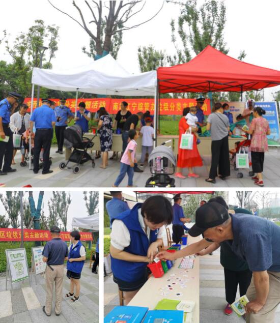 上午九點,網(wǎng)格員們及綜管辦的工作人員就已在美麗的秦淮河畔布置好場地、拉好橫幅、放置好宣傳展板、準(zhǔn)備好宣傳手冊。隨著居民群眾的陸續(xù)到來,網(wǎng)格員和綜管辦的工作人員向大家介紹了垃圾分類的重要性,并通過垃圾分類小游戲,在互動中增進(jìn)大家對于垃圾分類知識的了解,如不同顏色的垃圾桶代表的不同意義:藍(lán)色桶代表“可回收物”,綠色桶代表“廚余垃圾”,紅色桶代表“有害垃圾”,黑色桶代表“其他垃圾”等內(nèi)容,號召大家垃圾分類從自己做起,共同養(yǎng)成低碳環(huán)保的生活習(xí)慣,踐行低碳環(huán)保理念為垃圾分類當(dāng)表率,為美麗龍西做貢獻(xiàn)。