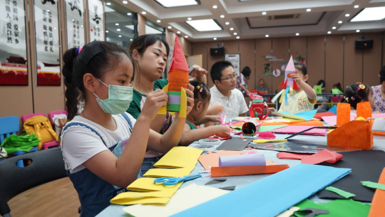 7月24日,秦淮社區(qū)攜手南京航空航天大學(xué)“淬煉紅心社會(huì)工作服務(wù)中心”的志愿者們,為社區(qū)青少年講解垃圾分類的相關(guān)知識(shí),并帶領(lǐng)社區(qū)的孩子們進(jìn)行垃圾分類的趣味游戲“變廢為寶,自制長征系列火箭模型”。在活動(dòng)現(xiàn)場(chǎng),志愿者向孩子們?cè)敿?xì)介紹了火箭模型的制作材料和制作方法。在志愿者的帶領(lǐng)下,孩子們?cè)谒芰掀可嫌妙伭贤可狭俗约合矚g的顏色,用廢紙和廢棄紙盒裁剪成火箭的助推器和逃逸塔等結(jié)構(gòu),并在“箭體”上進(jìn)行粘貼。最后,充滿了奇思妙想的孩子們用畫筆在塑料瓶上畫出了自己心目中火箭的樣子。一個(gè)個(gè)塑料瓶在孩子們的手中,變成了各式各樣精巧的小火箭。