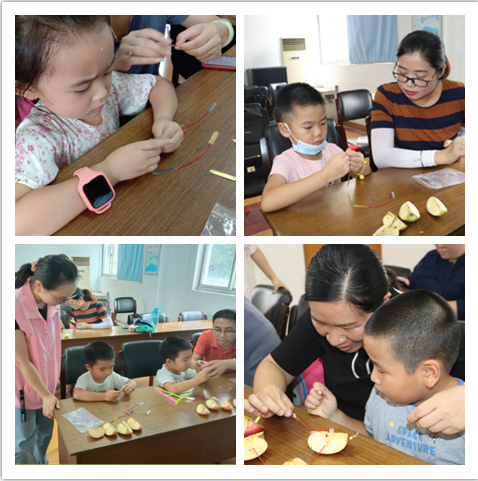 活動(dòng)開(kāi)始之前,社區(qū)巾幗志愿者將大家?guī)?lái)的蘋(píng)果逐個(gè)切片作為實(shí)驗(yàn)材料。在等待活動(dòng)開(kāi)始的同時(shí),志愿者們還為每位孩子準(zhǔn)備了可愛(ài)的竹蜻蜓,鼓勵(lì)小朋友們認(rèn)真聽(tīng)講,積極參與。