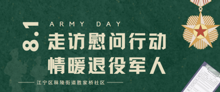 “八一”建軍節(jié)來臨之際,7月30日,江寧區(qū)秣陵街道勝家橋社區(qū)組織網(wǎng)格員走訪慰問了重點優(yōu)撫對象、軍烈士遺屬,給他們送去黨和政府的關(guān)懷,向他們致以節(jié)日的問候和美好的祝福。