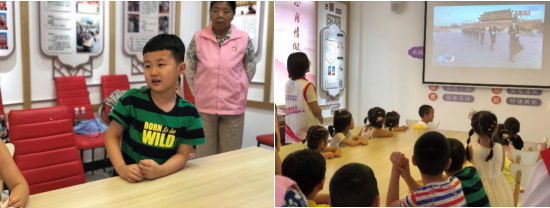 新銅社區(qū)還以八一建軍節(jié)為契機舉辦了一個小小的升旗儀式,小朋友們看著影片中解放軍叔叔在天安門前整齊劃一的步伐,都自發(fā)地全體起立,一個個站得筆直,看著冉冉升起地五星紅旗敬起了少先隊隊禮,大大的眼睛中流露出滿滿的驕傲與贊美,他們用稚嫩的嗓音唱起了國歌,大家都被孩子們的真誠所感染,升旗儀式結束,活動室里掌聲雷動。