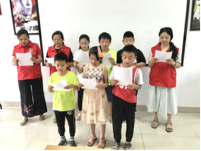 最后一個環(huán)節(jié),誦讀詩詞《七律.長征》。“紅軍不怕遠征難,萬水千山只等閑。 五嶺逶迤騰細浪......”志愿者和孩子們鏗鏘有力的誦讀聲把活動推向了高潮。