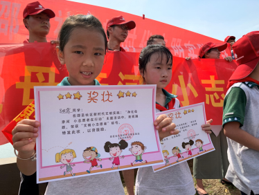 清理垃圾行動開始,在志愿者的帶領(lǐng)下,大家像一道乘著橡皮船,家長和孩子互相配合,對風(fēng)管帶兩邊的垃圾進(jìn)行全面拉網(wǎng)式清理。遇到不方便清理或頑固垃圾,大家索性徒手處理,以實際行動守護(hù)一江碧水,推進(jìn)生態(tài)文明建設(shè)。孩子們一路清理,一路開展競賽,看誰的垃圾袋裝得多、垃圾裝得滿,看誰的眼睛亮、垃圾搶得快,雖然小姑娘們的辮子上滴著汗,小伙子們的后背沾著濕衣,但是一路無人叫苦,沒人喊累。終點處,小志愿者們拿著用自己的勞動和汗水贏得的獎狀,自豪的笑容洋溢在臉上……
