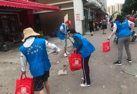 活動(dòng)中,志愿者們一共分成三組,,攜帶掃把、垃圾夾等勞動(dòng)工具,進(jìn)行衛(wèi)生清掃、垃圾拾撿、清理“牛皮廯”、整治共享單車、勸導(dǎo)商戶規(guī)范經(jīng)營(yíng)等活動(dòng),以實(shí)際行動(dòng)還居民一個(gè)干凈、整潔的生活環(huán)境。“藍(lán)”馬甲,成為一道亮麗的風(fēng)景線。