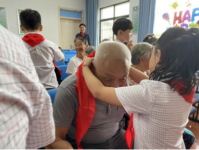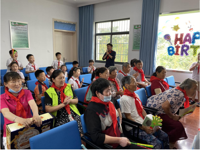 送生日祝福。在“送生日祝福”的環(huán)節(jié),小朋友們?yōu)殚L者們佩戴上鮮紅的紅領(lǐng)巾和送上生日禮物,祝福長者們健康長壽、青春永駐,而長者們也贈(zèng)與小朋友們大大的蘋果,希望小朋友們平安健康快樂的茁壯成長。隨后,小朋友們?yōu)殚L者們戴好生日帽、端出生日蛋糕、點(diǎn)好蠟燭,在齊唱生日歌中,把衷心的祝福送給每一位長者,送給現(xiàn)場的每一個(gè)人。