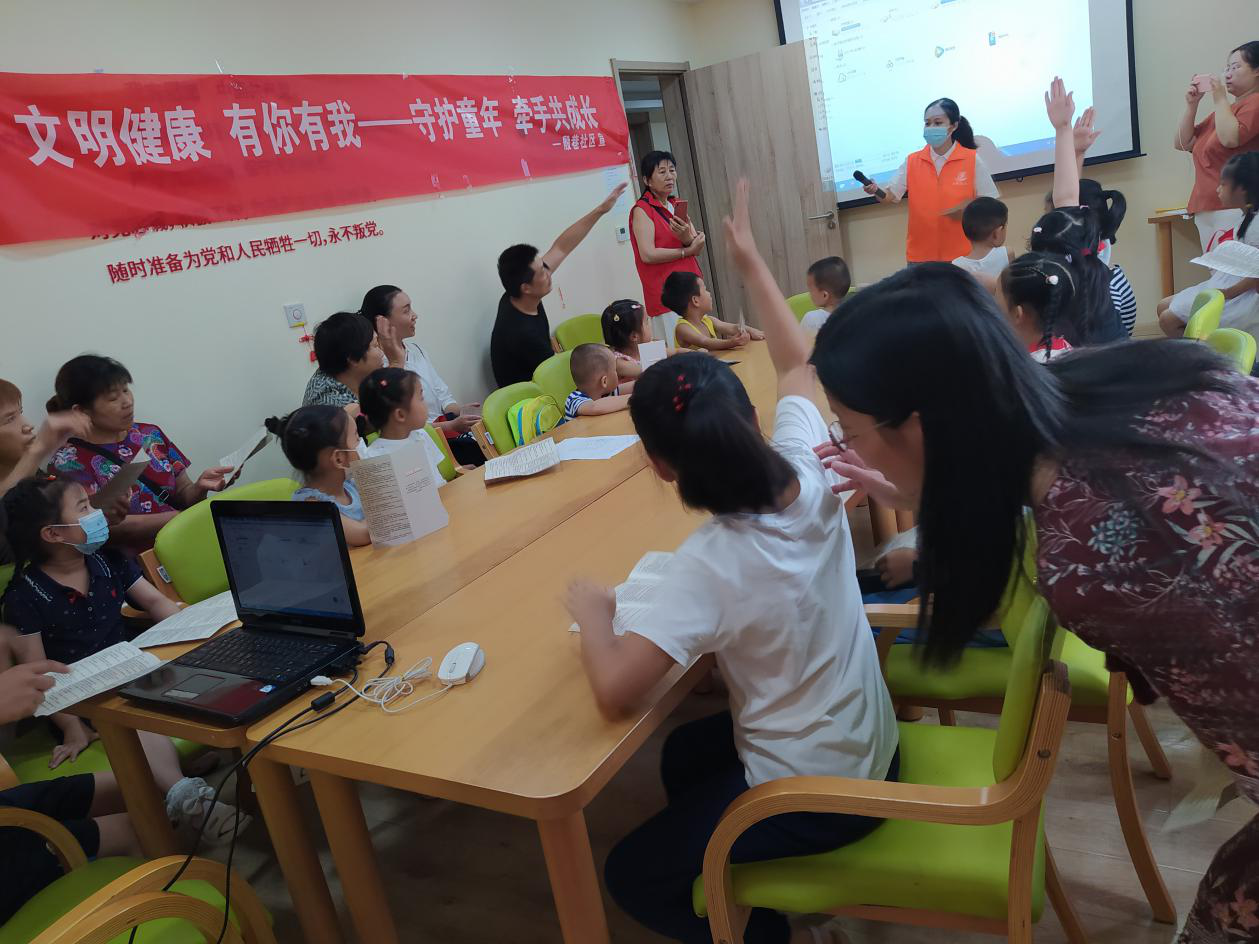 立秋后天氣涼爽,殷巷社區(qū)的許多居民帶著孩子聚集在新時代文明實(shí)踐站進(jìn)行舞蹈、書法、手工等活動,社工和志愿者們走進(jìn)新時代文明實(shí)踐站,通過發(fā)放“民法典50問”的繪本,向社區(qū)居民解讀了部分關(guān)于民法典的基本常識,并同居民開展了問答互動,為積極參與回答的社區(qū)居民們送上了雨傘等小禮品,居民們紛紛表示有所收獲。
