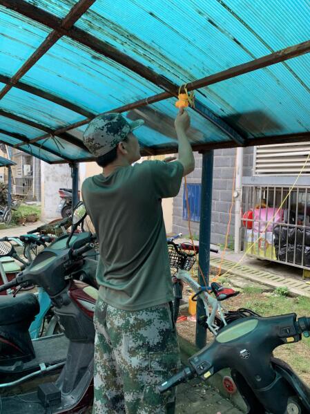 這次行動重點(diǎn)排查了電瓶車亂放、飛線亂牽充電的現(xiàn)象。殷巷新寓是社區(qū)集中拆遷安置房的一個(gè)大小區(qū),有幾萬戶居民。小區(qū)里亂拉亂牽飛線充電的現(xiàn)象非常多。民兵營戰(zhàn)士挨家挨戶,逐一做工作,勸導(dǎo)自行拆除,登記入戶清理飛線,并畫好非機(jī)動車停車線,幫居民歸置擺放好電瓶車。