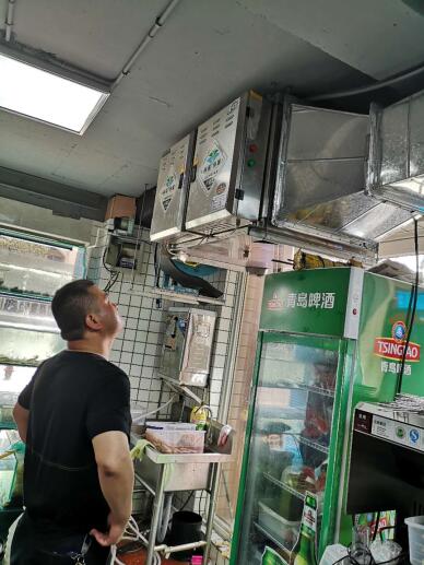 在檢查中,社區(qū)環(huán)保工作人員聯(lián)合街道環(huán)保辦深入餐飲企業(yè),現(xiàn)場(chǎng)查看了蠔太太海鮮大排檔廚房?jī)艋b置和設(shè)備使用情況。環(huán)保辦束科在了解具體情況后,發(fā)現(xiàn)該店油煙排放沒(méi)有達(dá)到距離居民住宅區(qū)30米,不符合環(huán)保大氣條例的要求,因此對(duì)該店提出更換凈化器及規(guī)范更改煙道的要求。