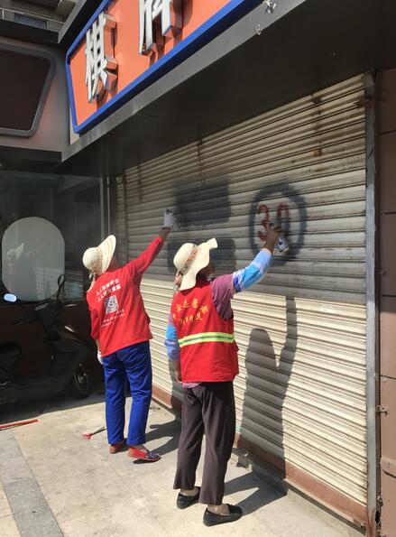 大家分工明確,發(fā)揮不怕臟、不怕累的奉獻精神,帶著自噴漆、水桶、刷子等工具仔細認真清理,不遺漏任何的“蛛絲馬跡”,共清理樓棟單元40多個,清運破沙發(fā)、舊家具等雜物8車,清除牛皮癬80余處。