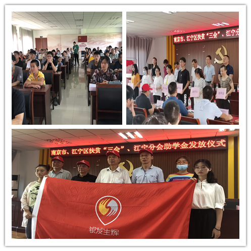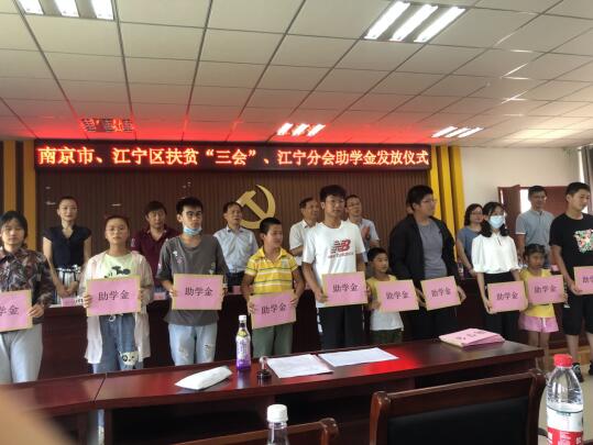 孟秋季節(jié)艷陽照,碩果累累欲飄香。8月20日,南京市江寧區(qū)江寧街道荷花社區(qū)聯(lián)合南京市扶貧開發(fā)協(xié)會(huì)、江寧區(qū)扶貧開發(fā)協(xié)會(huì)、江寧區(qū)扶貧開發(fā)協(xié)會(huì)、江寧街道分會(huì)在社區(qū)二樓會(huì)議室召開了2020年度扶貧助學(xué)金發(fā)放儀式。南京市扶貧“三會(huì)”張寧生會(huì)長、高遠(yuǎn)航副會(huì)長、盧正生秘書長、南京希元生物醫(yī)藥科技有限公司劉勇業(yè)董事長、江蘇華瑞國際實(shí)業(yè)集團(tuán)有限公司楊春燕主任、南京埃倫嘉輝友誼服裝有限公司金濤經(jīng)理、環(huán)宇集團(tuán)(南京)有限公司朱程琴主任、江寧區(qū)扶貧“三會(huì)”孟向前會(huì)長、南京市委老干部局劉薇主任、江寧街道黨工委組織委員朱宗繼及荷花、西寧社區(qū)負(fù)責(zé)人等出席發(fā)放儀式。