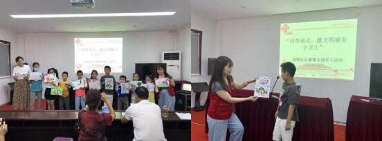 為深入推進文明城市創(chuàng)建工作,引導(dǎo)轄區(qū)居民文明規(guī)范養(yǎng)犬,南塑社區(qū)物業(yè)分公司攜手楓盛家綜黨支部開展以“科學(xué)養(yǎng)犬,做文明城市小衛(wèi)士”為主題的暑期未成年人活動?;顒娱_始前,社區(qū)利用“掌上云社區(qū)”微信群向轄區(qū)小朋友們征集關(guān)于“文明養(yǎng)犬”主題的畫作,得到居民朋友熱烈響應(yīng)?;顒又校∨笥褌儙е漠嫷漠嬙诩议L的陪同下興高采烈地來社區(qū)參加活動。活動期間,孩子們積極舉手要上臺分享自己畫作的內(nèi)容,通過趣味的畫作、稚嫩的語言將文明養(yǎng)犬的理念傳遞給大家?;顒咏Y(jié)束后,社區(qū)通過將小朋友們的作品收集起來制作成宣傳海報向廣大居民朋友進行宣傳,并免費向社區(qū)內(nèi)有犬家庭發(fā)放牽引繩、倡議書,呼吁社區(qū)居民“文明養(yǎng)犬,從自己做起!”