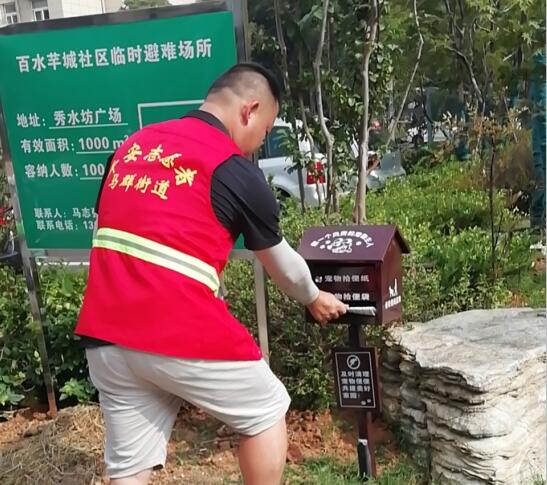 為了維護(hù)社區(qū)美好環(huán)境,幫助居民養(yǎng)成“隨手拾便”的習(xí)慣,樹立“文明養(yǎng)寵”的理念,百水芊城社區(qū)在小區(qū)內(nèi)主路及文體廣場(chǎng)等人流密集處設(shè)置了寵物便紙盒,由保潔人員進(jìn)行日常維護(hù)管理,定期補(bǔ)充廢舊報(bào)紙、廣告紙,便于平時(shí)遛狗的居民在忘帶拾便袋時(shí)能夠及時(shí)取用,清理寵物糞便。便紙盒上還印有“遛狗牽繩”、“及時(shí)清理寵物糞便、共建美好家園”的宣傳內(nèi)容。不僅幫助愛(ài)寵居民能夠在享受寵物帶來(lái)樂(lè)趣的同時(shí)維護(hù)小區(qū)環(huán)境的整潔,也避免了其他居民路上“踩雷”的尷尬。