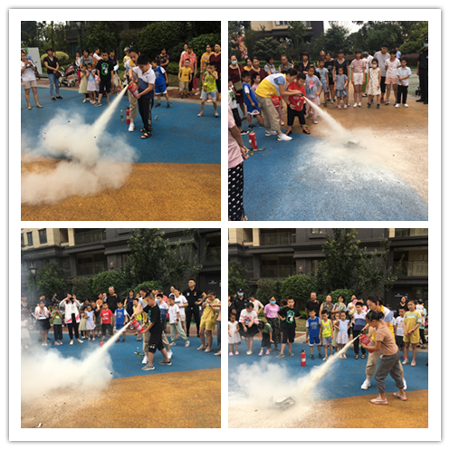 在“實戰(zhàn)滅火”環(huán)節(jié),老師現(xiàn)場示范了干粉滅火器的正確使用方法和注意事項,可簡單概括為:“一拉、二壓、三噴”,并強調(diào)使用滅火器時要鎮(zhèn)定,需對準(zhǔn)火苗根部進行噴射。隨后,全體孩子們進行現(xiàn)場操作,親自體驗滅火器的使用方法,積累了滅火實戰(zhàn)經(jīng)驗,為平安社區(qū)加了一道安全之鎖。