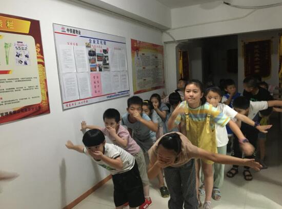 授課結(jié)束后,緊接著就是“煙霧場景逃生演練”,“嘟嘟嘟……”隨著一聲聲消防預(yù)警信號的響起,孩子們在老師的引導(dǎo)用手捂著口鼻,并且很有秩序地排隊彎腰下樓梯,所有孩子井然有序地逃生到集合場地。
