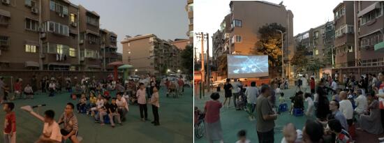 社區(qū)工作人員調(diào)試好設(shè)備后,電影也將放映。居民們帶著家里的老人孩子,搬上三兩個(gè)小凳子,坐在活動(dòng)廣場(chǎng)等待電影的開始?!吨袊鴻C(jī)長》這部影片根據(jù)川航3U8633航班緊急迫降事件改編,講述了機(jī)組執(zhí)行航班任務(wù)時(shí),在萬米高空突遇駕駛艙風(fēng)擋玻璃爆裂脫落、座艙釋壓的極端罕見險(xiǎn)情并化險(xiǎn)為夷安全降落的故事。談起這一事件,人們都表示真想給那位機(jī)長點(diǎn)贊!電影開始后,廣場(chǎng)上的居民三五成群地坐在一起,大家都全神貫注地觀影,電影中的不少鏡頭都讓觀眾們驚呼不止。對(duì)于社區(qū)里的老人們而言,這樣的觀影活動(dòng)最有意義,既能豐富自己的文化生活,還能從中學(xué)習(xí)到榜樣的精神。