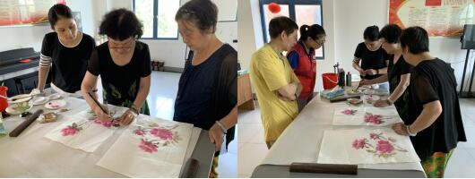 有愛,更有溫度。此次活動中,邵圣社區(qū)明月港灣沐方軒畫室桑義芳老師帶領大家提升牡丹畫法,首先為大家講解畫筆的調(diào)色,如何通過色彩的濃淡變化,刻畫畫面的遠近、虛實關系,采取不同筆法的運用處理,突出花朵的層次,從整個畫面的謀篇布局,到具體細節(jié)的細致處理。隨后,在老師的指導下,老學員們紛紛上手,在紙張上用心刻畫出自己理解和對繪畫知識的掌握,經(jīng)過上學期的入門學習,這學期的提升課大家已經(jīng)熟練了很多,不一會一幅幅栩栩如生的畫便展現(xiàn)在大家面前,桑老師逐一點評并點出問題和優(yōu)化方案,有時會直接幫助大家就行優(yōu)化補充,果然優(yōu)化后的牡丹花更飽滿更生動。
