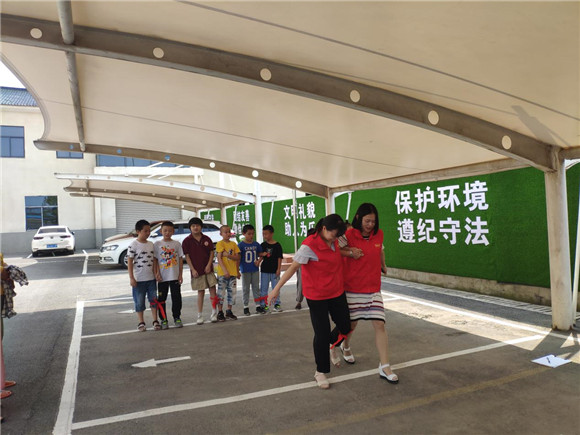 兩人三足綁腿跑項目看似簡單,卻都充分考驗著團隊成員的協(xié)作能力,只有節(jié)奏統(tǒng)一、配合默契,才能取得最終的勝利。民主村志愿者率先示范,在默契的配合下很快到達了終點。