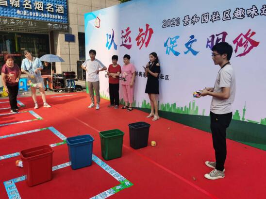 現(xiàn)場(chǎng)趣味活動(dòng),精彩紛呈?;顒?dòng)在趣味“垃圾分類”扔沙包環(huán)節(jié)中拉開了序幕,選手在線外將寫有不同垃圾字樣的沙包扔進(jìn)對(duì)應(yīng)顏色的垃圾桶,既比拼了運(yùn)動(dòng)能力,更向居民普及了垃圾分類的知識(shí)。此外,還有趣味的兒童穿衣比賽、文明知識(shí)套圈、趣味拔河等環(huán)節(jié),形式多樣趣味多多的文明活動(dòng),呼應(yīng)了“一言一行講文明,做人做事講誠信”的主題,讓居民們學(xué)習(xí)和掌握“文明修身”的理論知識(shí),增強(qiáng)保護(hù)環(huán)境的意識(shí)?;顒?dòng)結(jié)束后,居民們暢所欲言,陳奶奶說道:“這次活動(dòng)我又長(zhǎng)見識(shí)了,以前知道的不全面,現(xiàn)在又補(bǔ)了一課,希望社區(qū)多舉辦這樣的活動(dòng),讓我們攜手爭(zhēng)做文明南京人。”