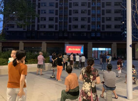 在前期電影內(nèi)容的選擇上,大家一致覺得播放“紅色電影”可以更好的推廣社區(qū)精神文化。通過前期的社區(qū)宣傳欄、電子屏、社區(qū)微信群、入戶調(diào)研時(shí)宣傳等多種形式通知大家積極參與。晚上7點(diǎn)不到,廣場上已經(jīng)有不少居民到來,等待電影的播出。影片播放過程中,很多居民深受感染,每到動(dòng)情之處都會情不自禁的流下激動(dòng)的淚水,每到振奮人心處現(xiàn)場都伴有為祖國驕傲的掌聲。影片結(jié)束后,一位居民對社區(qū)工作人員說,這部電影他看了好幾遍,每次都有不同的感悟,感嘆祖國的日益強(qiáng)盛和現(xiàn)今百姓的全民素質(zhì)都在提升。梁書記在和居民聊天時(shí)也表示現(xiàn)在大家的生活水平日益提高,精神文化建設(shè)不可懈怠,也非常感謝居民們的配合,給與支部工作很大的支持。
