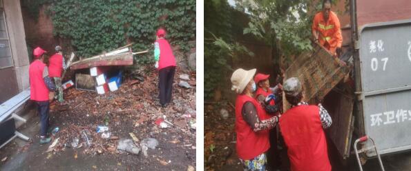 堯化社區(qū)時(shí)間銀行志愿者有一批“紅色娘子軍”,長(zhǎng)期從事網(wǎng)格巡查、環(huán)境治理等工作,形成吃苦耐勞的團(tuán)隊(duì)性格。近日,堯化社區(qū)10多位時(shí)間銀行志愿者帶著掃把、垃圾袋、鐵鍬等“作戰(zhàn)工具”,來(lái)到103號(hào)小區(qū)“報(bào)到”。103號(hào)小區(qū)是江蘇省煤田地質(zhì)物測(cè)隊(duì)職工宿舍,屬無(wú)物業(yè)小區(qū),時(shí)間銀行志愿者在網(wǎng)格巡查時(shí)發(fā)現(xiàn)小區(qū)內(nèi)有兩處頑疾,一處為垃圾池堆放垃圾長(zhǎng)時(shí)間無(wú)人清理,另一處為退休老人長(zhǎng)期私占廣場(chǎng),搭建約30平方米違建。發(fā)現(xiàn)問(wèn)題后,志愿者們立即行動(dòng),經(jīng)過(guò)1個(gè)多小時(shí)的努力,將職工宿舍垃圾池垃圾清理干凈;同時(shí)配合城管隊(duì)員拆除違建,合力清除頑疾,保障居民生活質(zhì)量,打造舒適、干凈、宜居的小區(qū)居住環(huán)境。