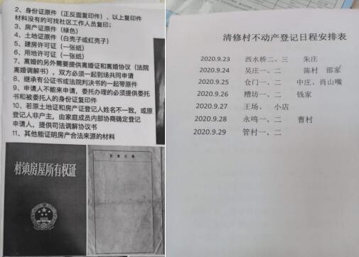 據(jù)清修村工作人員介紹,此次登記工作受理時間從9月23日至9月29日,登記區(qū)域包括清修村所有農(nóng)村集體建設(shè)用地,宅基地及宗地內(nèi)的地上房屋等建筑物,同時提醒村民辦理當(dāng)天一定要把相關(guān)材料帶齊帶全。