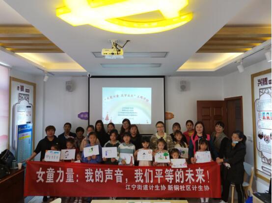 為了進一步宣傳國際女童日,提高女童的社會地位,促進出生人口性別比自然平衡,創(chuàng)造有利于女童成長成才的社會環(huán)境,10月11號上午,南京市江寧區(qū)江寧街道計生協(xié)聯(lián)合新銅社區(qū)計生協(xié)在社區(qū)未成年人活動室開展“我的聲音,我們平等的未來”國際女童日主題活動,呼吁轄區(qū)更多的普通家庭關(guān)注女童發(fā)展,促進女童保護意識。
