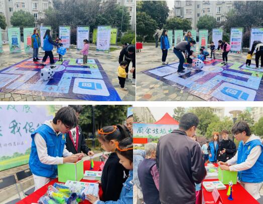 活動是以宣傳+展示+體驗融合開展,下面一起去了解一下各個區(qū)精彩瞬間吧!映入眼簾的是我們的主背景,主背景前位置的是一個垃圾分類知識講解區(qū),是由我們專業(yè)部門負責(zé)人進行關(guān)于垃圾分類問題的答疑。在兩邊是我們的展示體驗區(qū),在主背景的左手邊是舊物改造區(qū),上面擺滿了琳瑯滿目的手工藝品。這些物品都是用雪糕棒、飲料瓶等舊物品制作和改造成一件精美的藝術(shù)品,并且志愿者老師為大家簡要講解環(huán)境問題,讓大家從舊物改造開始,學(xué)會循環(huán)利用舊物進行美化生活,同時會有志愿者老師帶著大家一起制作環(huán)保小物件。在舊物改造區(qū)的旁邊是水凈化科普試驗體驗區(qū),小朋友們在這里會見證污水變清水的神奇,志愿者老師給大家講解水凈化裝置以及其原理,讓大家感受到科學(xué)的魅力所在。