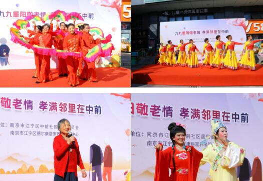 為了豐富居民群眾的精神文化生活,弘揚(yáng)“尊老、愛老、敬老”的傳統(tǒng)美德,10月20日,南京市江寧區(qū)東山街道中前社區(qū)新時代文明實(shí)踐站開展以“九九重陽敬老情 孝滿鄰里在中前”為主題的重陽節(jié)文藝匯演。