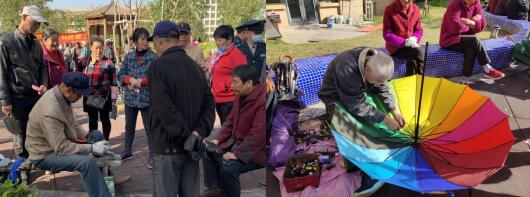 本次便民服務給大家?guī)砹藴y量血壓、磨刀、修傘、理發(fā)、健康篩查、清洗老花眼鏡、棉花糖制作、才藝展示等服務。早晨8點不到,志愿者們便早早地來到小區(qū),準備好工具,來到場地中,很快投入到服務中去。村民們陸續(xù)趕來,有的等待理發(fā),有的拿著剪刀、菜刀等候磨刀,有的拿著家里幾把壞了好久的雨傘等著修理,有的擼起袖子等著量血壓,現(xiàn)場一派熱鬧景象。