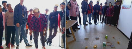 活動(dòng)中,“親清箭塘 多彩服務(wù)”志愿者們?yōu)榻衲臧耸途攀軞q的老人過集體生日,現(xiàn)場志愿者們和老人們一起玩你畫我猜及套圈圈互動(dòng)游戲。在套圈環(huán)節(jié),大家積極參與,興致勃勃,老人使出看家本領(lǐng),不僅套中了獎(jiǎng)品,也收獲了快樂。張爺爺高興地鼓起掌來,前兩次他都沒有投中,第三次終于投中了一袋黑米。老人們盡興發(fā)揮,玩得不亦樂乎,整個(gè)活動(dòng)現(xiàn)場歡聲笑語一片。