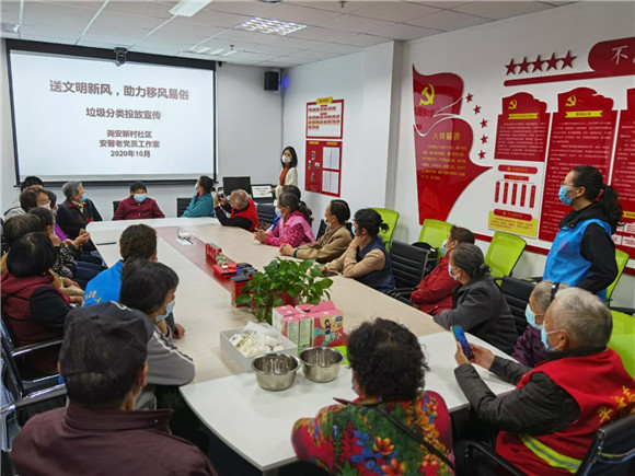 聯(lián)合共建單位南京志達環(huán)保有限公司黨支部、南京郵政堯化門黨支部等共建單位開展“送文明新風 助力移風易俗”活動?;顒又校具_環(huán)保的工作人員向大家科普了垃圾分類的概念,講解了垃圾的后續(xù)利用價值,介紹了堯化街道垃圾分類的政策要求,倡導(dǎo)大家做好垃圾分類的示范作用。