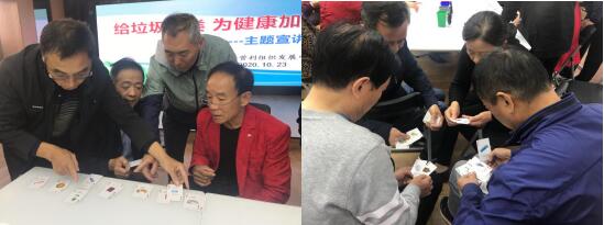 農(nóng)歷九月九日的重陽節(jié),寓意“久久”,自古以來有敬老感恩的傳統(tǒng),是一個體現(xiàn)中國傳統(tǒng)“孝”文化的節(jié)日,每年重陽節(jié),人們都會給家人或者長輩帶去真切的問候,寄托著人們對老人健康長壽的祝福。在活動中,社區(qū)準(zhǔn)備了豐富多彩的敬老游戲。垃圾分類我先甩,社工向居民介紹游戲規(guī)則,并解讀垃圾的種類。將居民分成四組,每組分配印有不同種類垃圾名稱的撲克牌,并有5分鐘的時間小組成員討論不同垃圾的歸類、小組的分工、出牌的順序,目的就是在最短的時間內(nèi)運用策略將手里的牌全部甩出去。叔叔阿姨們爭分奪秒的討論,有時為了一種垃圾的歸類“爭執(zhí)不下”,最終小組成員達成共識。