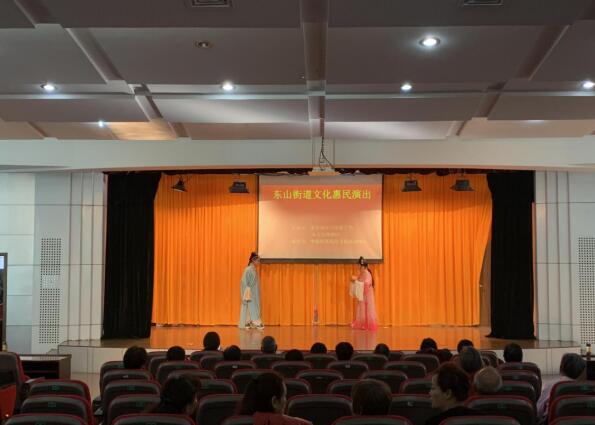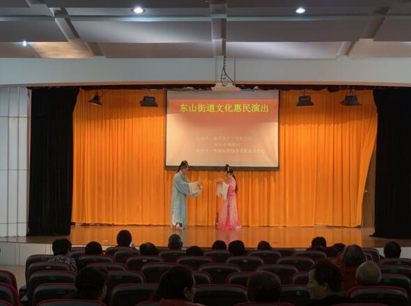 為積極培育和踐行社會主義核心價值觀,深入開展文化惠民活動,豐富廣大群眾業(yè)余文化生活,11月18日上午,江寧區(qū)群眾藝術(shù)館、南京錫劇團主辦的文化惠民演出活動在東山街道中前社區(qū)綜合文化活動中心舉辦,為轄區(qū)居民群眾送來了一場精彩紛呈的“文藝大餐”。