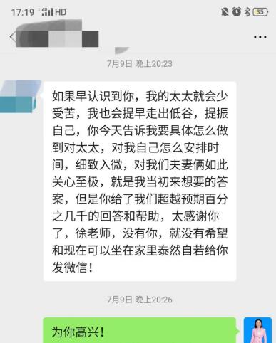 據(jù)了解,這位先生此前正面臨嚴(yán)重的婚姻危機(jī),不僅已經(jīng)影響到了男方的事業(yè),更是對(duì)孩子的成長(zhǎng)造成了很多負(fù)面的影響,在了解到這位先生的困擾后,婚姻家庭輔導(dǎo)室的徐燕老師及其他工作人員,多次放棄中午休息時(shí)間,線上線下雙向跟進(jìn),尋找問(wèn)題所在幫助及時(shí)解決,不僅挽回了他們的婚煙,讓男方可以心無(wú)所慮的奮斗拼搏自己的事業(yè),更是幫助兩位孩子回到正常的成長(zhǎng)環(huán)境,營(yíng)造了溫馨和睦的家庭氛圍。