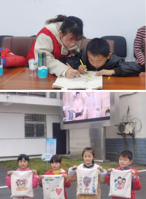隨后,志愿者向孩子們分發(fā)了水彩筆及白色帆布袋,讓他們懷著一顆感恩的心在帆布袋上自主創(chuàng)作,用一幅幅畫作表達對于社會關(guān)懷的感謝,感謝父母和長輩。